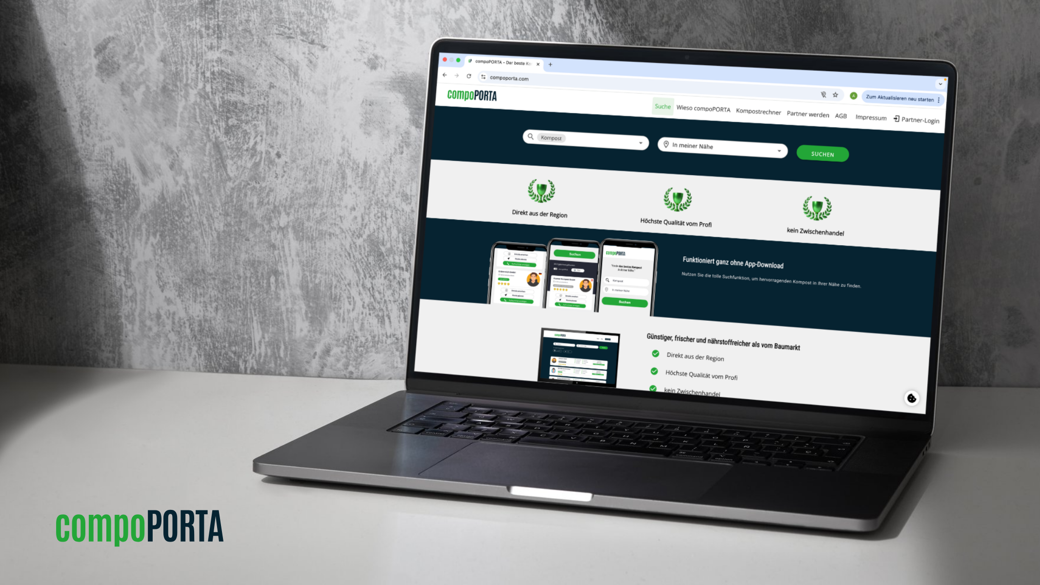 CompoPorta ist eine digitale Plattform, die Endkund:innen und Anbieter von Kompost, Erde und anderen Gartenmaterialien miteinander verknüpft. Die Plattform ermöglicht es Nutzern, regionale Anbieter schnell und einfach zu finden, Kompost zu berechnen und Angebote direkt zu vergleichen. Sie fördert Nachhaltigkeit, Transparenz und kurze Transportwege, indem sie lokale Anbieter sichtbar macht.